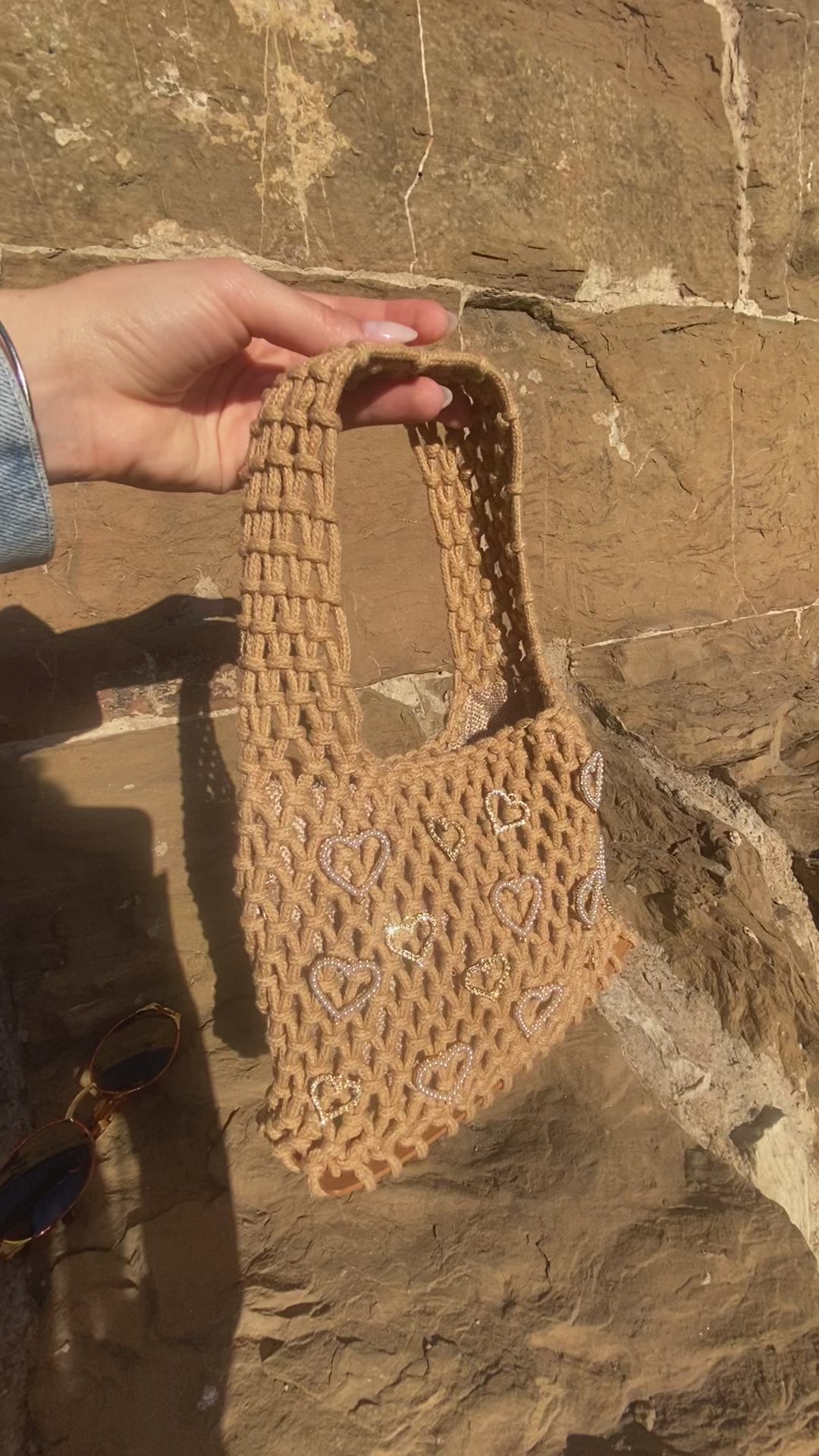 Yellow Wave è interamente decorata a mano con piccoli charm cuciti uno ad uno, rendondola unica e irripetibile.