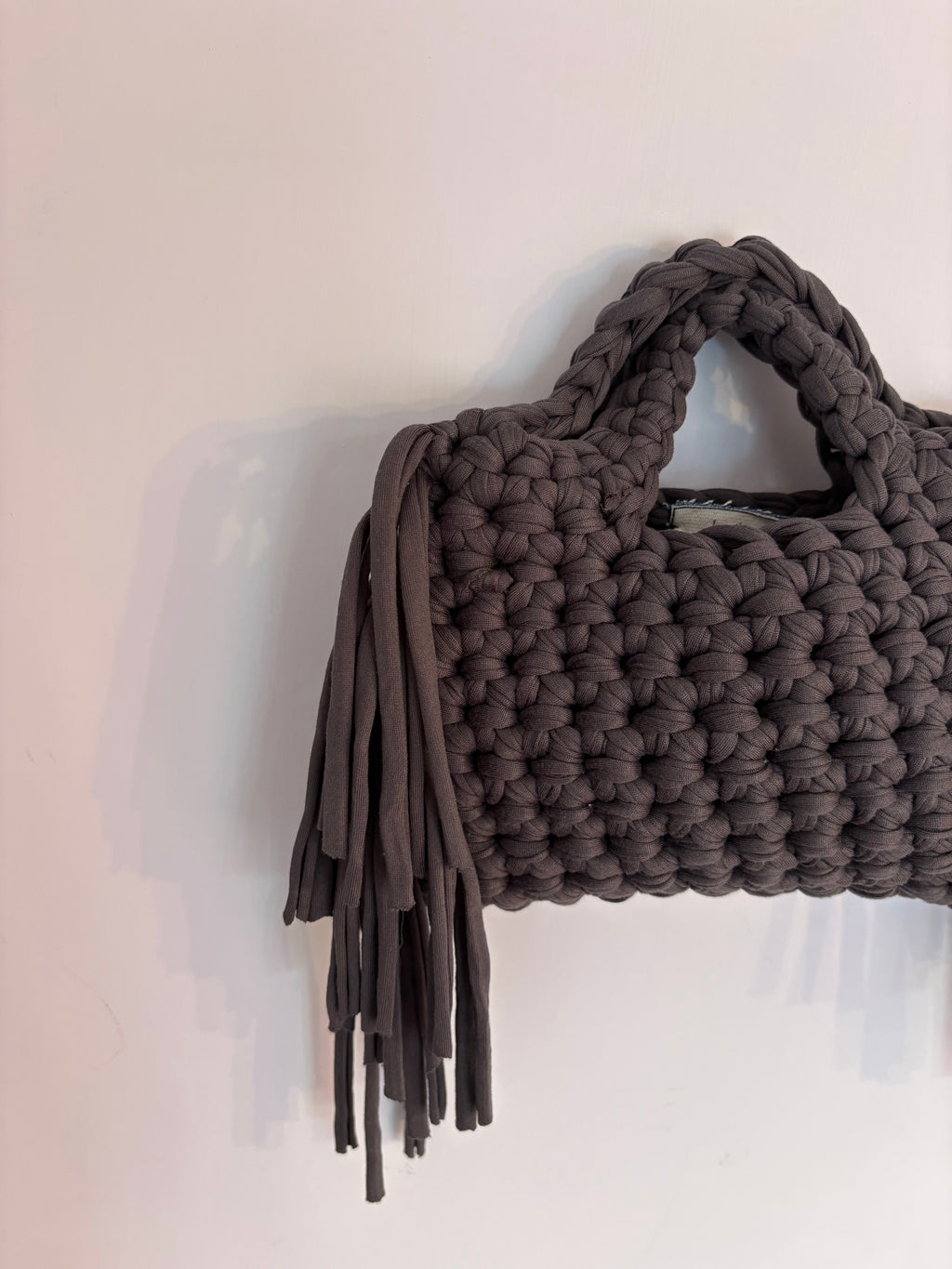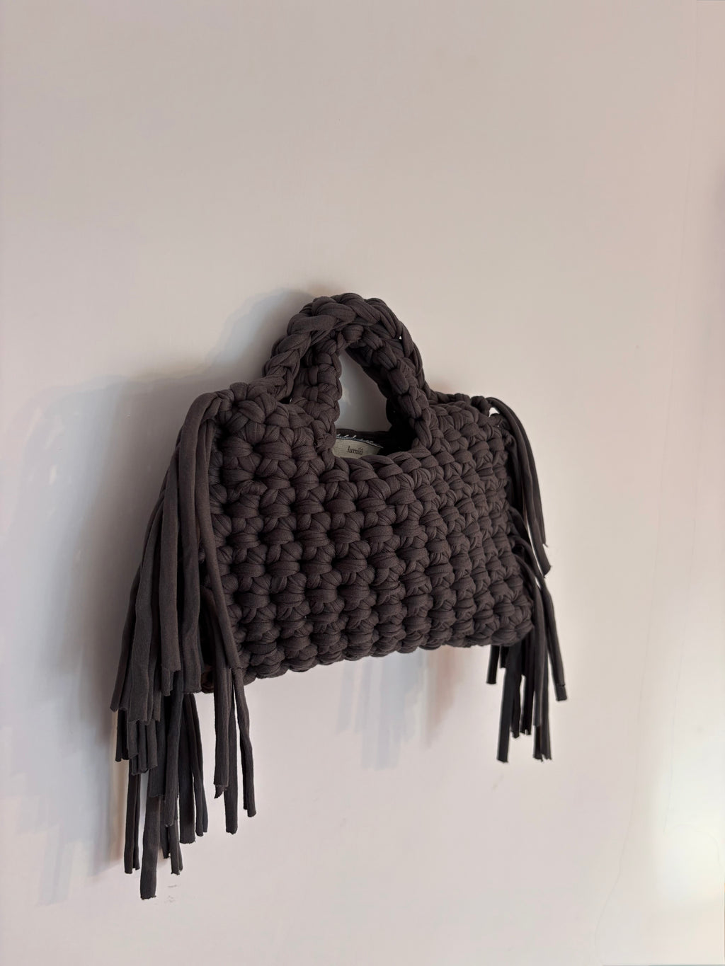 Una borsa che segue i tuoi movimenti. Morbida, leggera e realizzata interamente a mano all’uncinetto.