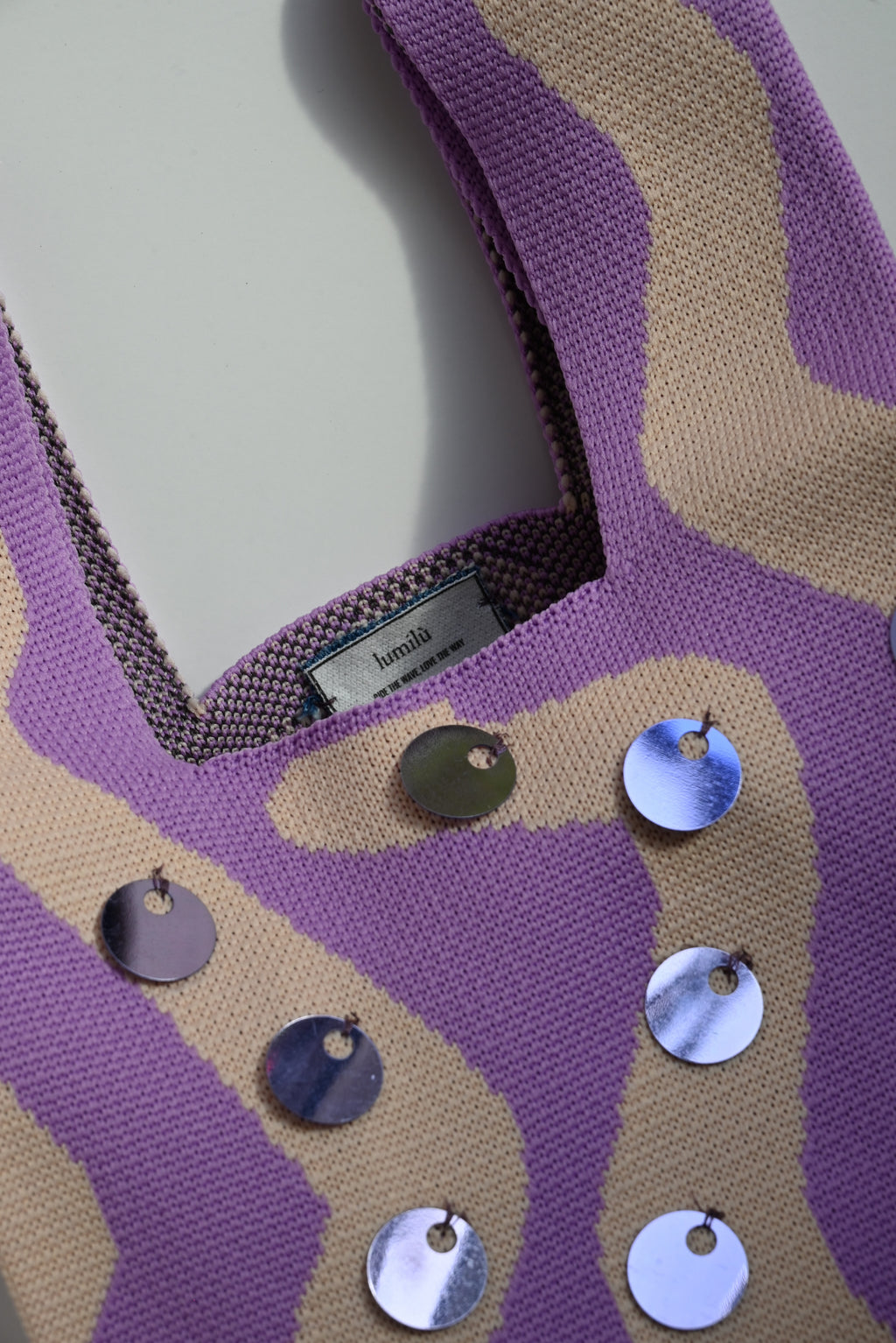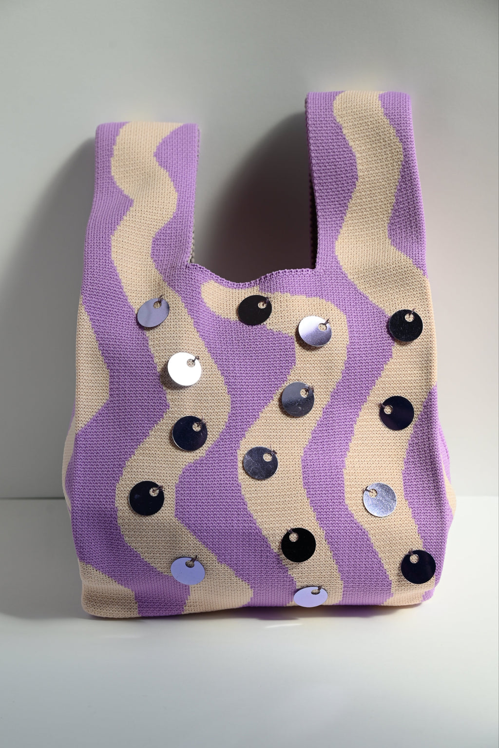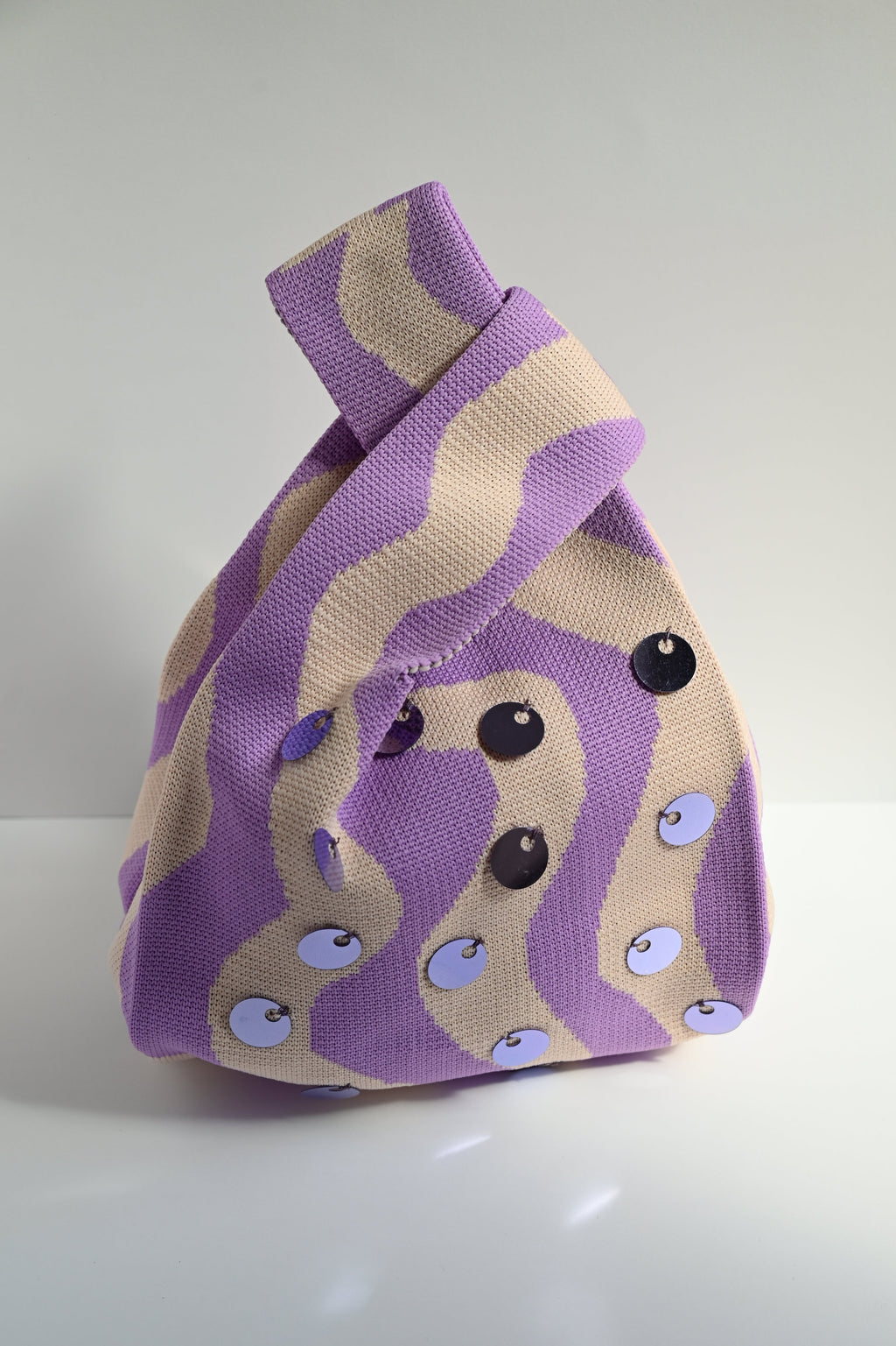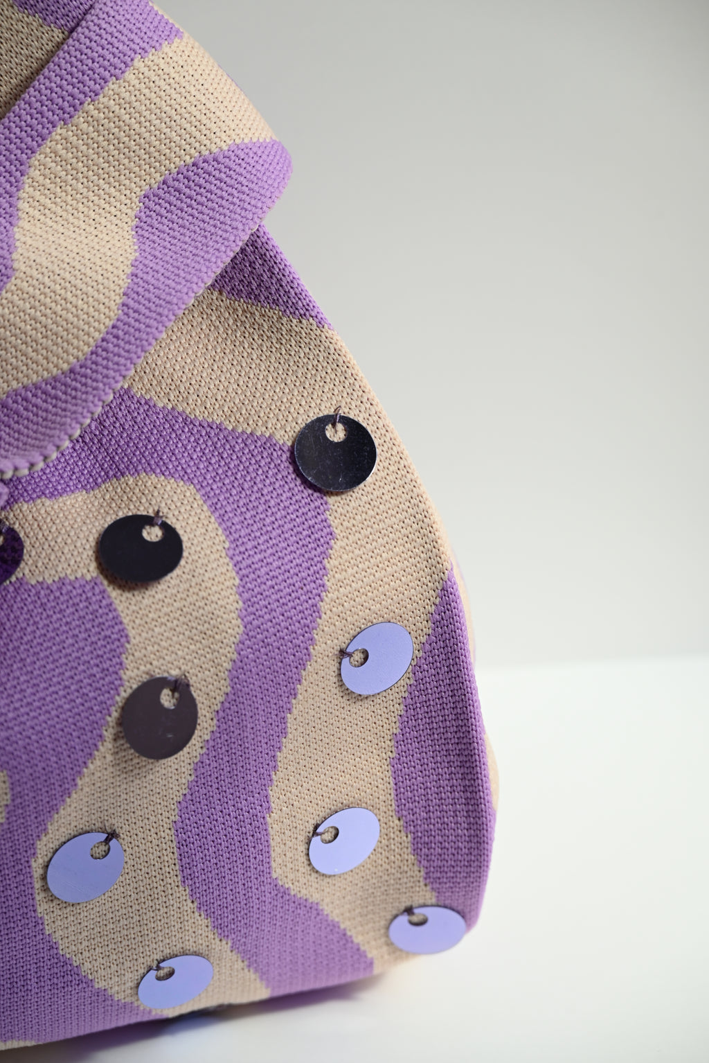 Le sfumature lilla e beige, insieme alle paillettes cucite a mano donano un effetto raffinato ma allo stesso tempo giocoso.